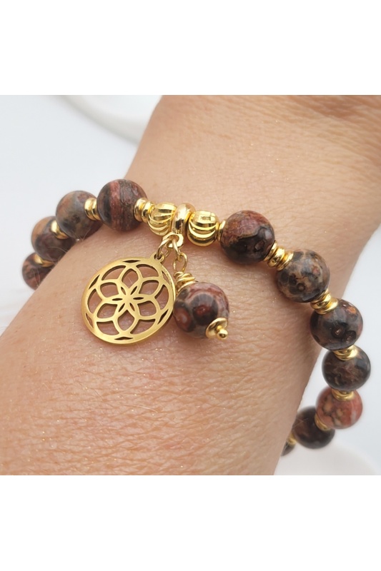 bracelet perle naturelle pierre gemme jaspe léopard 8mm